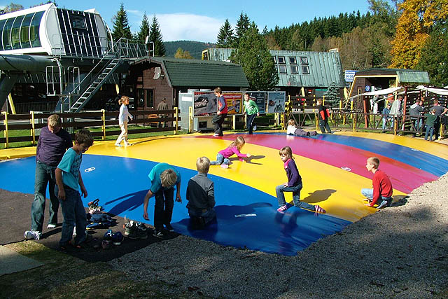 Kinderspielplatz befindet sich am unteren Rand der Teufelsberg Sessellift entfernt. Spielplatz hat riesige Burg aus Holz und auch große Luft-Trampolin. Freier Eintrittfür alle mit gültigem Sessellift Ticket können alle anderen Tickets an der Kasseerwerben.
